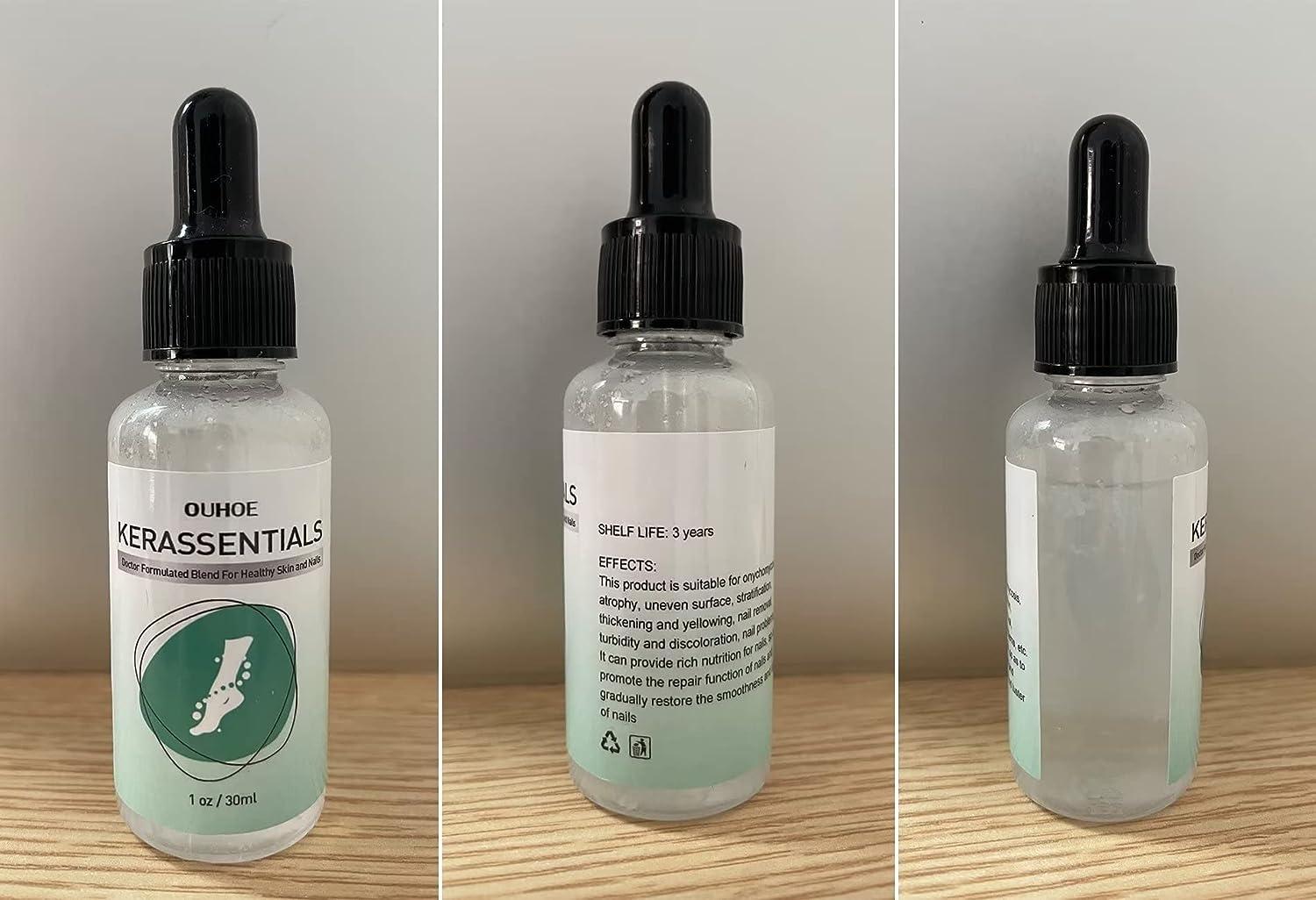 Краплі пом'якшують і розвантажують ніготь для легшого видалення в домашніх умовах. Moisturiza Nails: Kerassentials допомагають заспокоїти та запобігти свербінню, а також зміцнити та зволожити нігті. Натуральний безпечний: Kerassentials повністю натуральний і не містить синтетичних інгредієнтів. З цієї причини він також безпечний.
